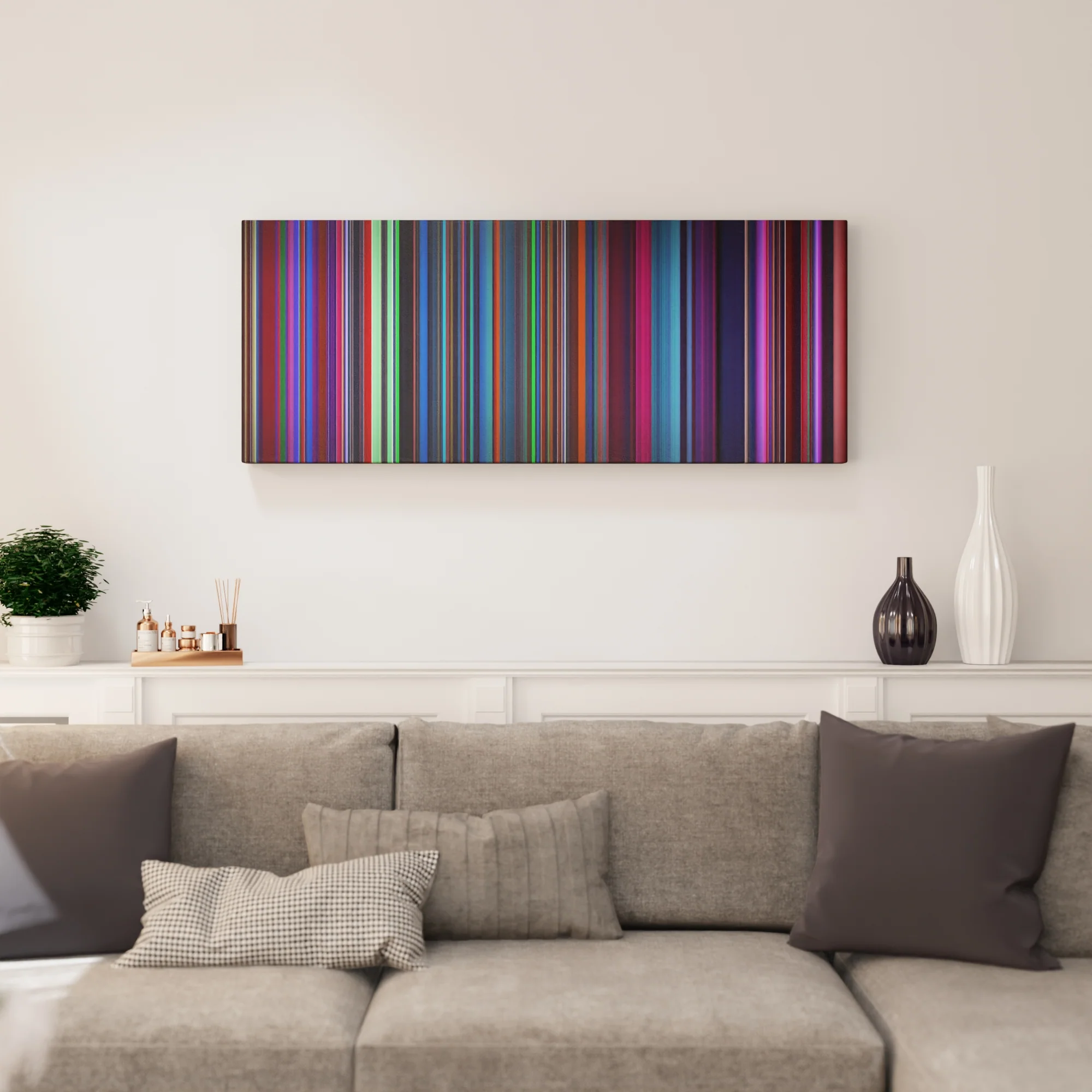 Presenting the ultimate treat for lovers of the Imagine Dragons - Believer song. For the first time ever, we've mapped out the entire DNA of the Imagine Dragons - Believer musical clip on canvas from start to finish. Every vertical stripe represents a scene from Imagine Dragons - Believer video, with the color taken as the average of all the frames within that scene.